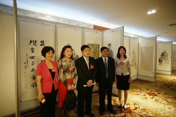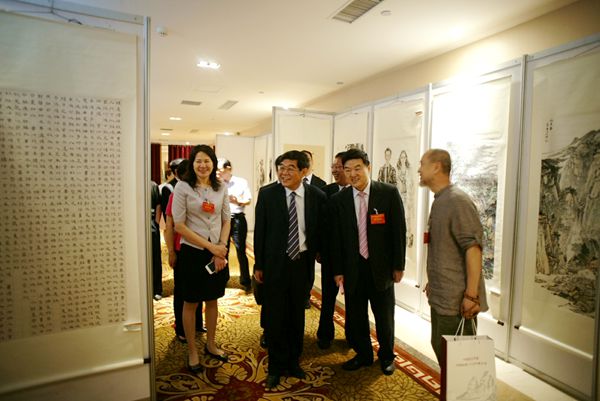 會議期間,與會嘉賓及代表參觀民盟河南省委舉辦的書畫展。